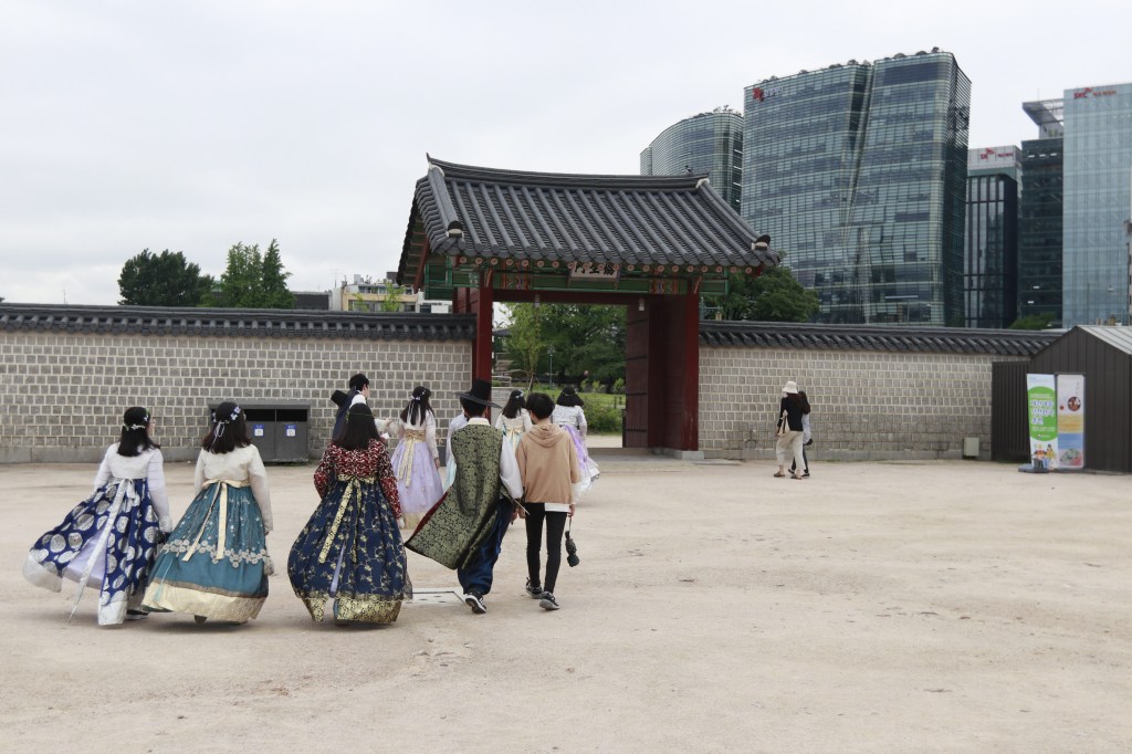 Once we made it to the stop for the Gyeongbokgung Palace we chose to follow the signs for exit number five. The exit spit us out right at the palace entrance, and it had to be the most gorgeous subway exit I have ever seen.