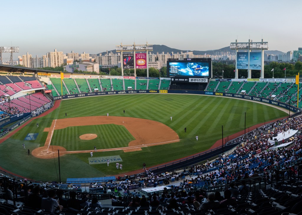The last professional baseball game I went to was a Mets-Expos game in Montreal in probably 2002, which also happened to be at a former Olympic field. I remember the hot dogs with relish and the Cracker Jacks, each costing far more than they would have mere feet outside the stadium. But Korean baseball doesn’t follow the rules.