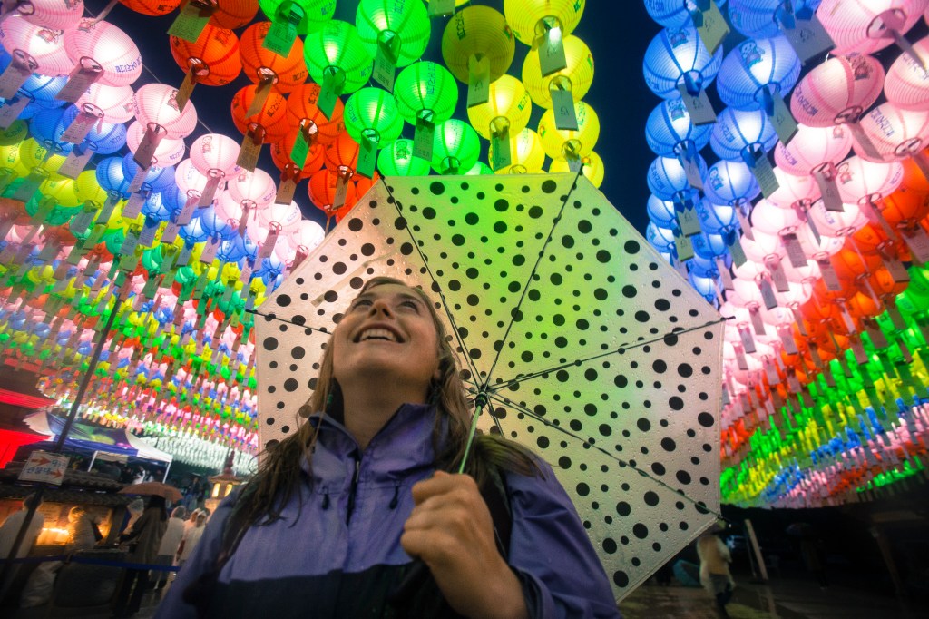 UM Journalism Student Sam Weber observes hanging lanterns at a temple in Seoul during Buddha’s Birthday. Photo taken by Mikensi Romersa.