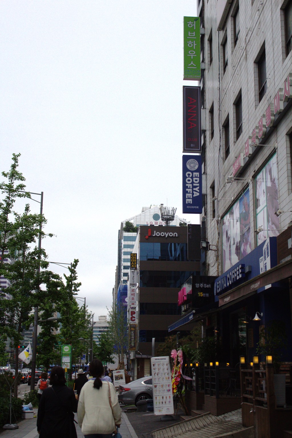 Dropping in and conducting a short interview doesn’t work if you’ve walked five miles and they can’t understand a single word you’ve said. Then all you end up with is blisters… and a few more blisters. So, after a long and disappointing afternoon, walking all around the large Hongdae district, up countless flights of stairs, to continually be rejected, we felt pretty down in the dumps.